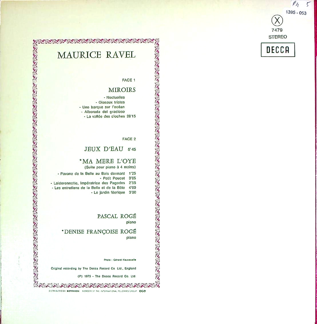 商品コード:1395-053[DECCA] P.ロジェ(pf) / ラヴェル:Pf独奏曲全集vol.3/鏡, 水の戯れ, マ・メール・ロワ