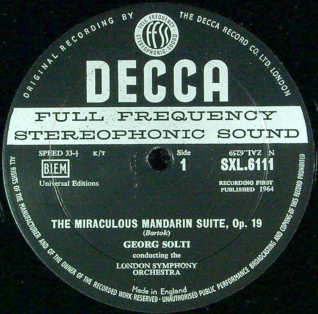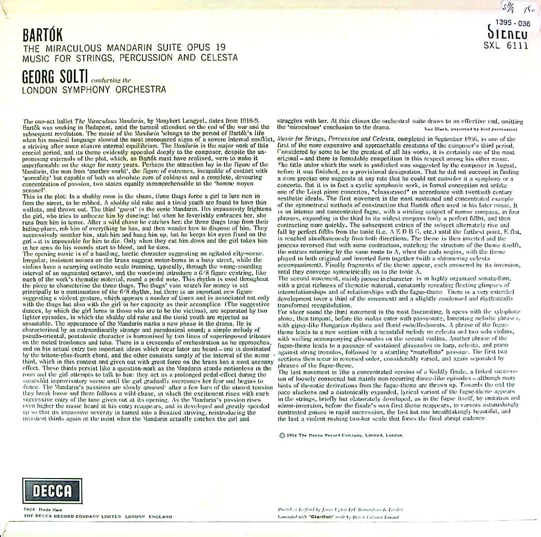 商品コード:1395-036[DECCA] G.ショルティ/ バルトーク:中国の不思議な役人, 弦楽器、打楽器とチェレスタのための音楽