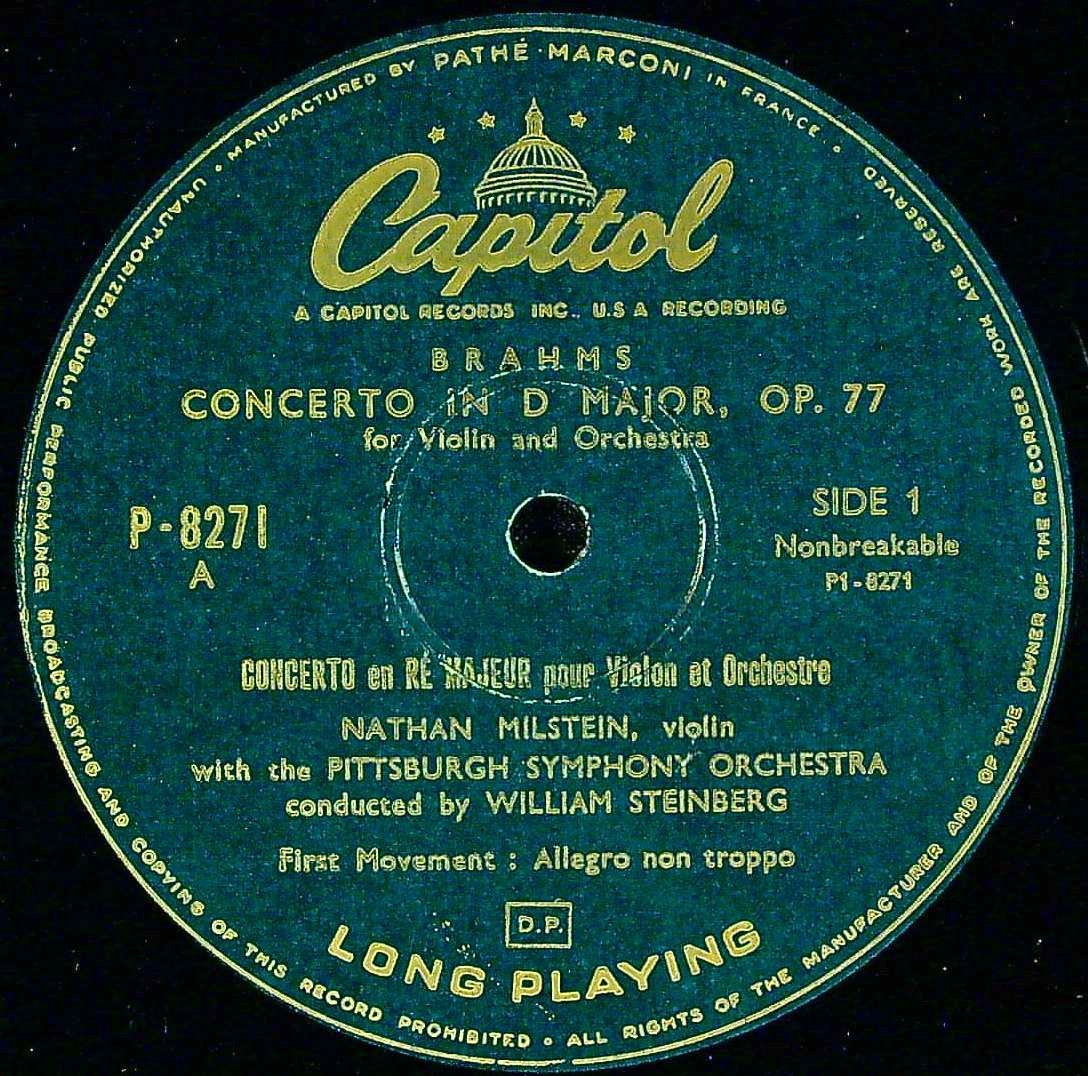 商品コード:1395-023p[CAPITOL] N.ミルシテイン(vn)/ ブラームス:Vn協奏曲Op.77