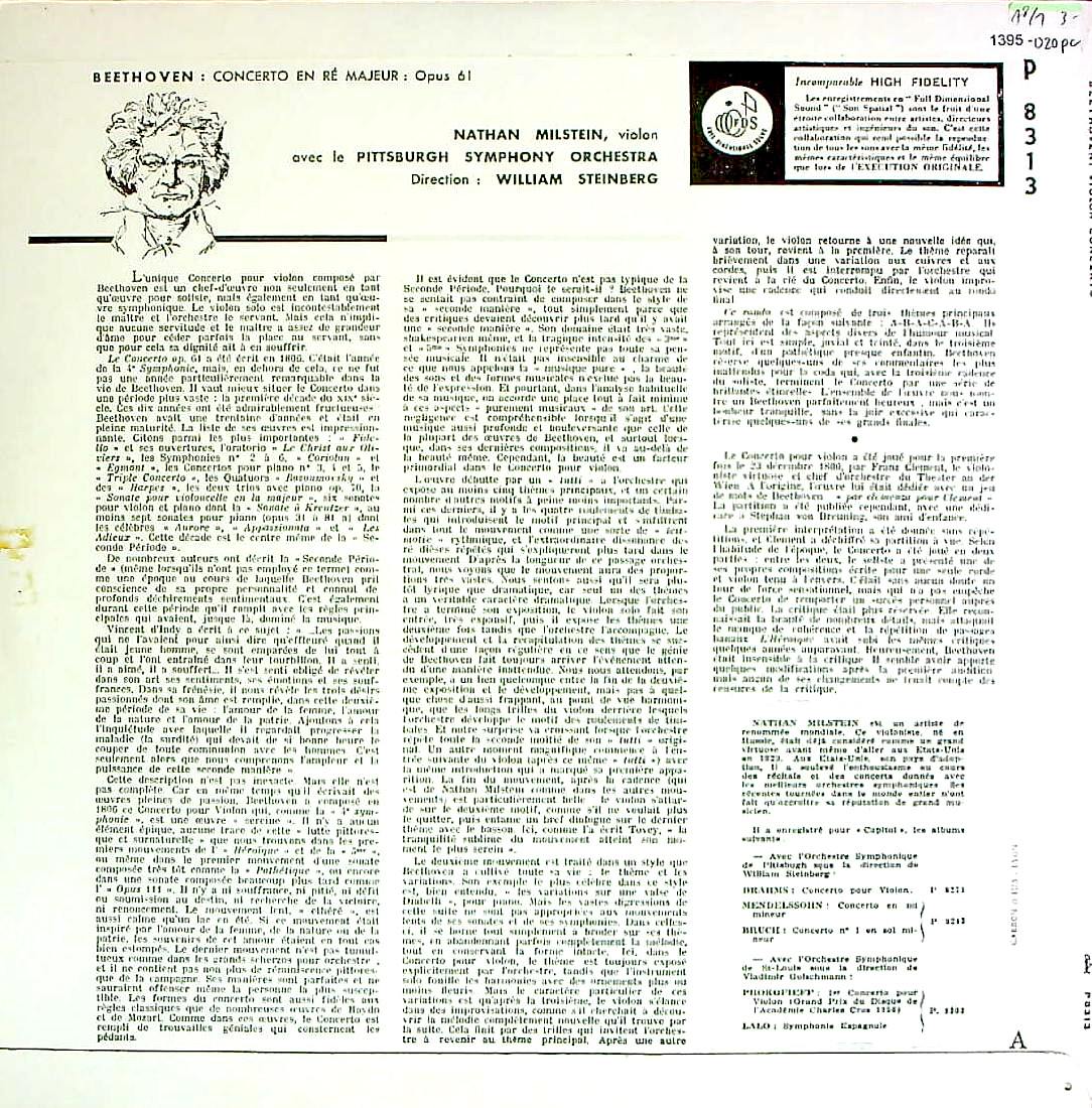 商品コード:1395-020pc[CAPITOL] N.ミルシテイン(vn)/ ベートーヴェン:Vn協奏曲Op.61