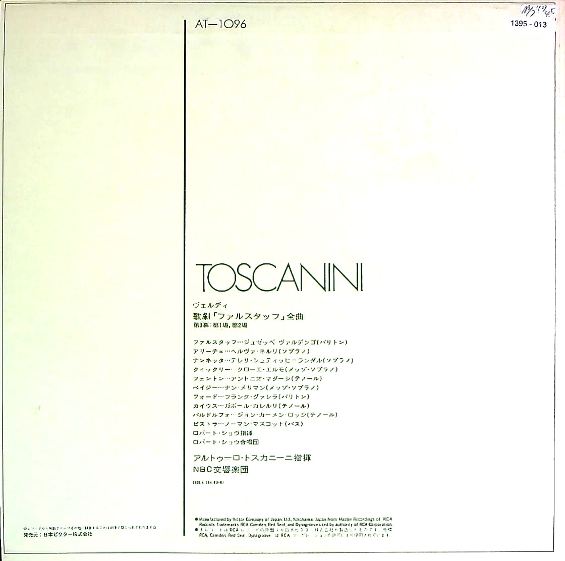 商品コード:1395-013[日本ビクター] コレクターズ・シリーズ「トスカニーニ」全12枚バラセット