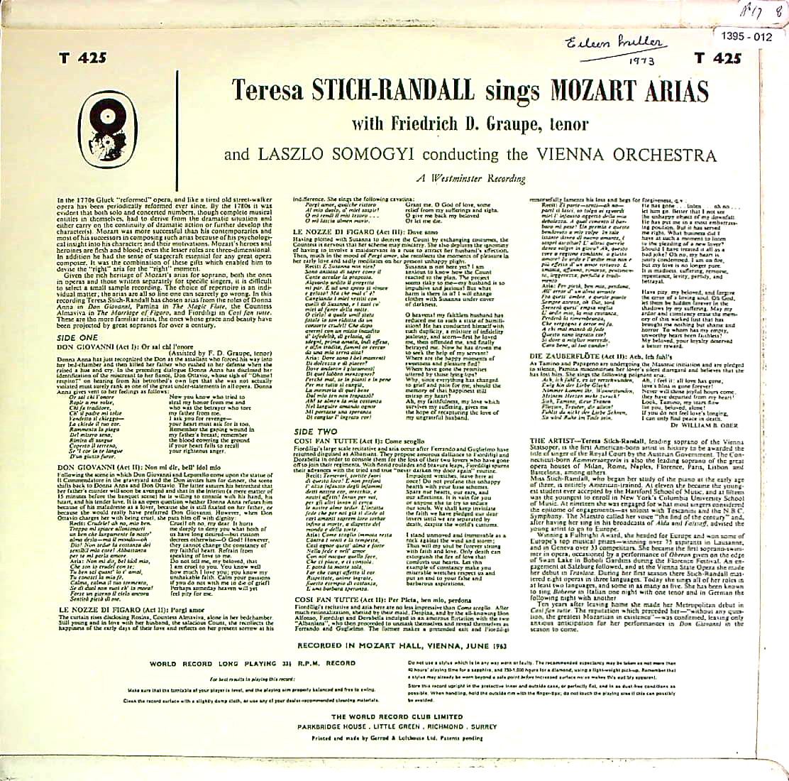 商品コード:1395-012[WRC] T.シュティヒ・ランダル(s)/ モーツァルト:オペラアリア集/フィガロ, ドン・ジョヴァンニ 他(全7曲)