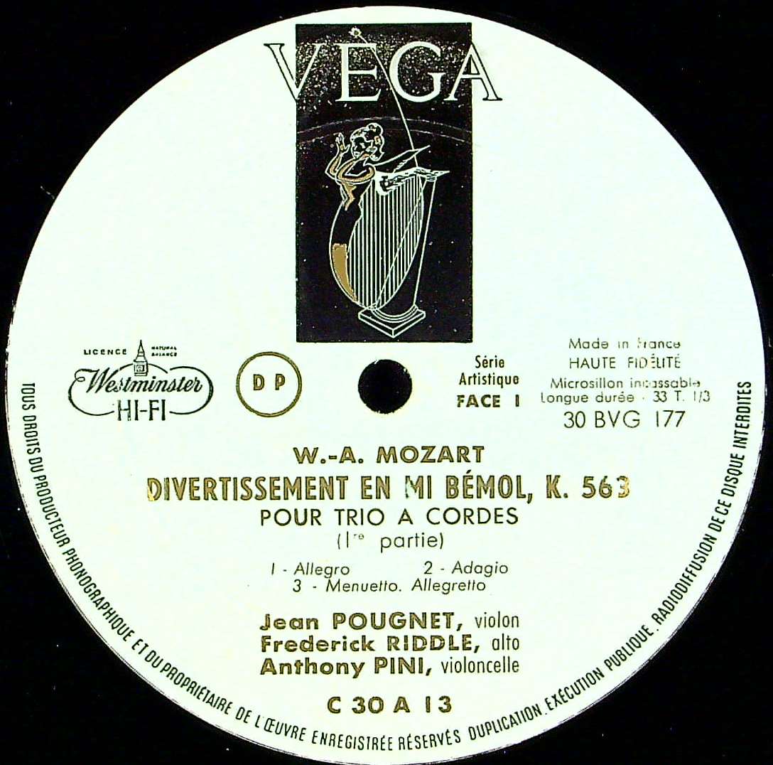 商品コード:1395-009[VÉGA] J.プーニェ(vn) F.リドル(va) A.ピーニ(vc) / モーツァルト:ディヴェルティメントK.563