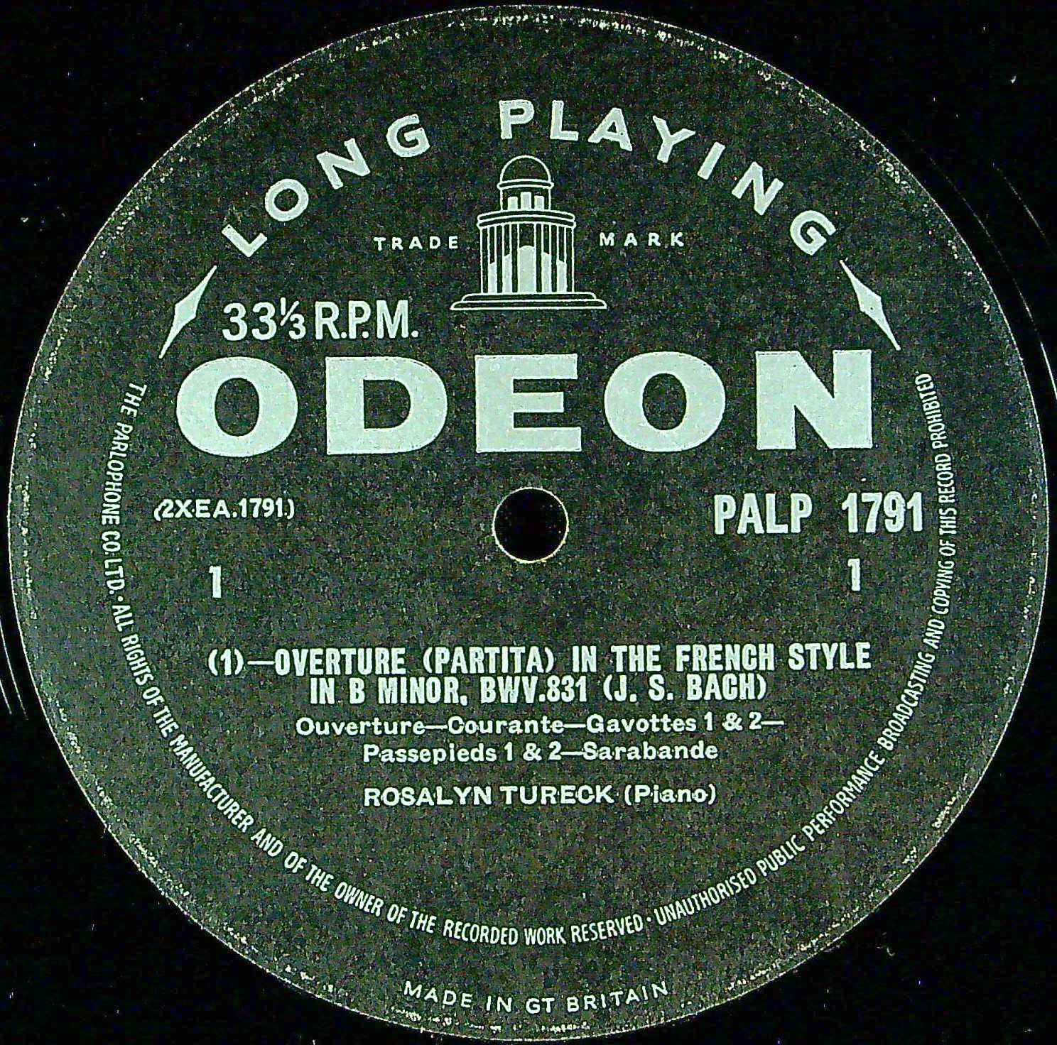商品コード:1395-002[ODEON] R.テューレック(pf) / バッハ:フランス風序曲BWV.831, イタリア協奏曲BWV.971