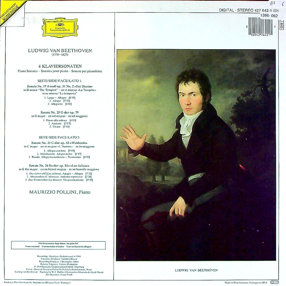 商品コード:1396-062[DGG] M.ポリーニ(pf) / ベートーヴェン:Pfソナタ集/17番Op.31-2「テンペスト」, 25番Op.79, 21番Op.53「ワルトシュタイン」, 26番Op.81a「告別」