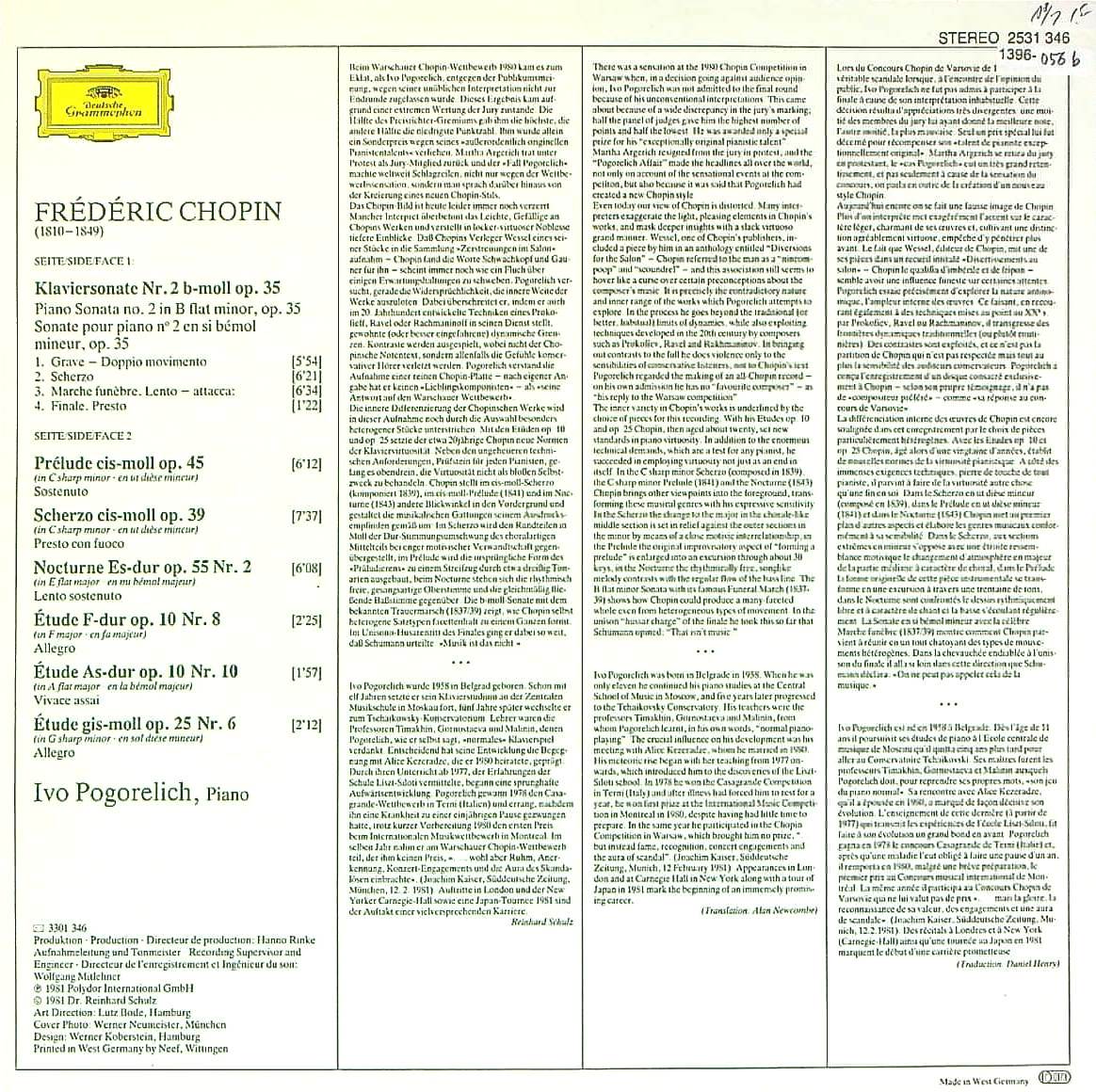 商品コード:1396-056b[DGG] I.ポゴレリチ(pf) / ショパン:葬送行進曲付, 前奏曲第25番, スケルツォ3番 他