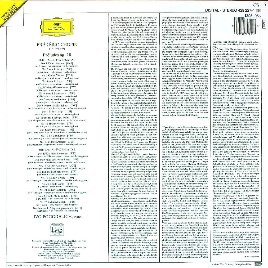 商品コード:1396-055[DGG] I.ポゴレリチ(pf) / ショパン:24の前奏曲Op.28(全曲
