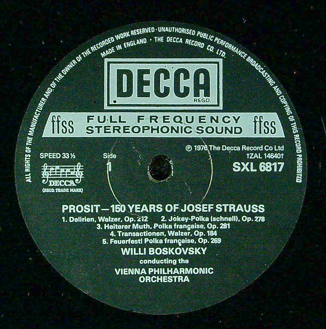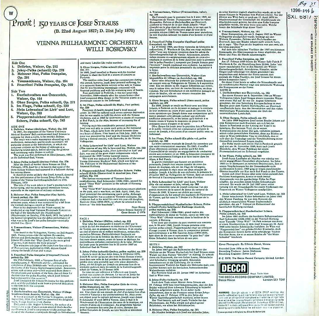 商品コード:1396-044b[DECCA] W.ボスコフスキー/ J.シュトラウス生誕150年記念/うわごと, 騎手, 上機嫌, トランスアクツィオン, 鍛冶屋のポルカ 他
