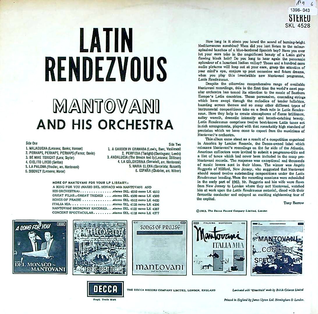 商品コード:1396-043[DECCA] マントヴァーニ/ ラテン・ランデヴー/マントヴァーニ・ラテン音楽選集