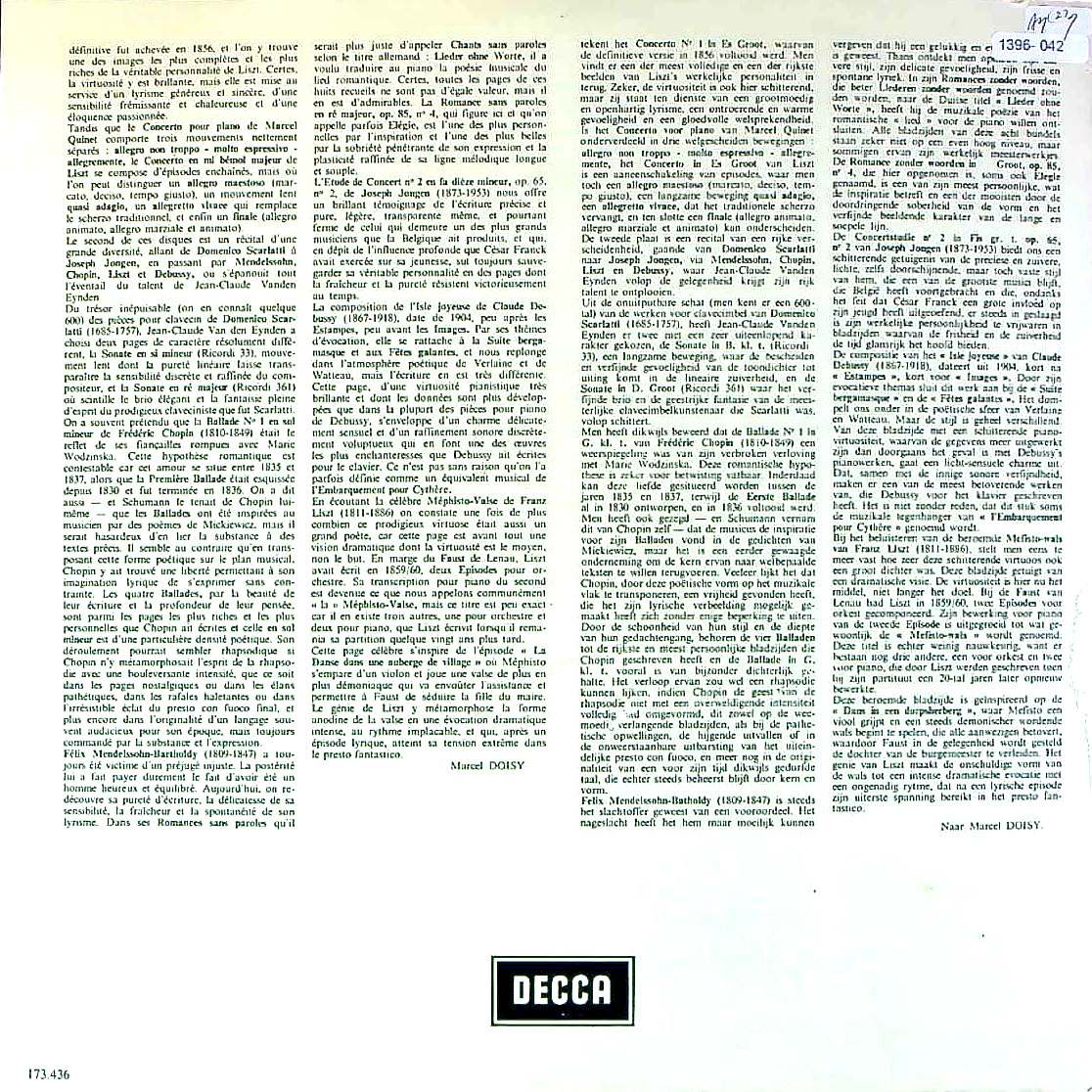 商品コード:1396-042[DECCA] J.C.ヴァンデン・エインデン(pf)/ 1964年エリザベート女王コンクール優勝者/リスト, スカルラッティ, ショパン, メンデルスゾーン, ドビュッシー