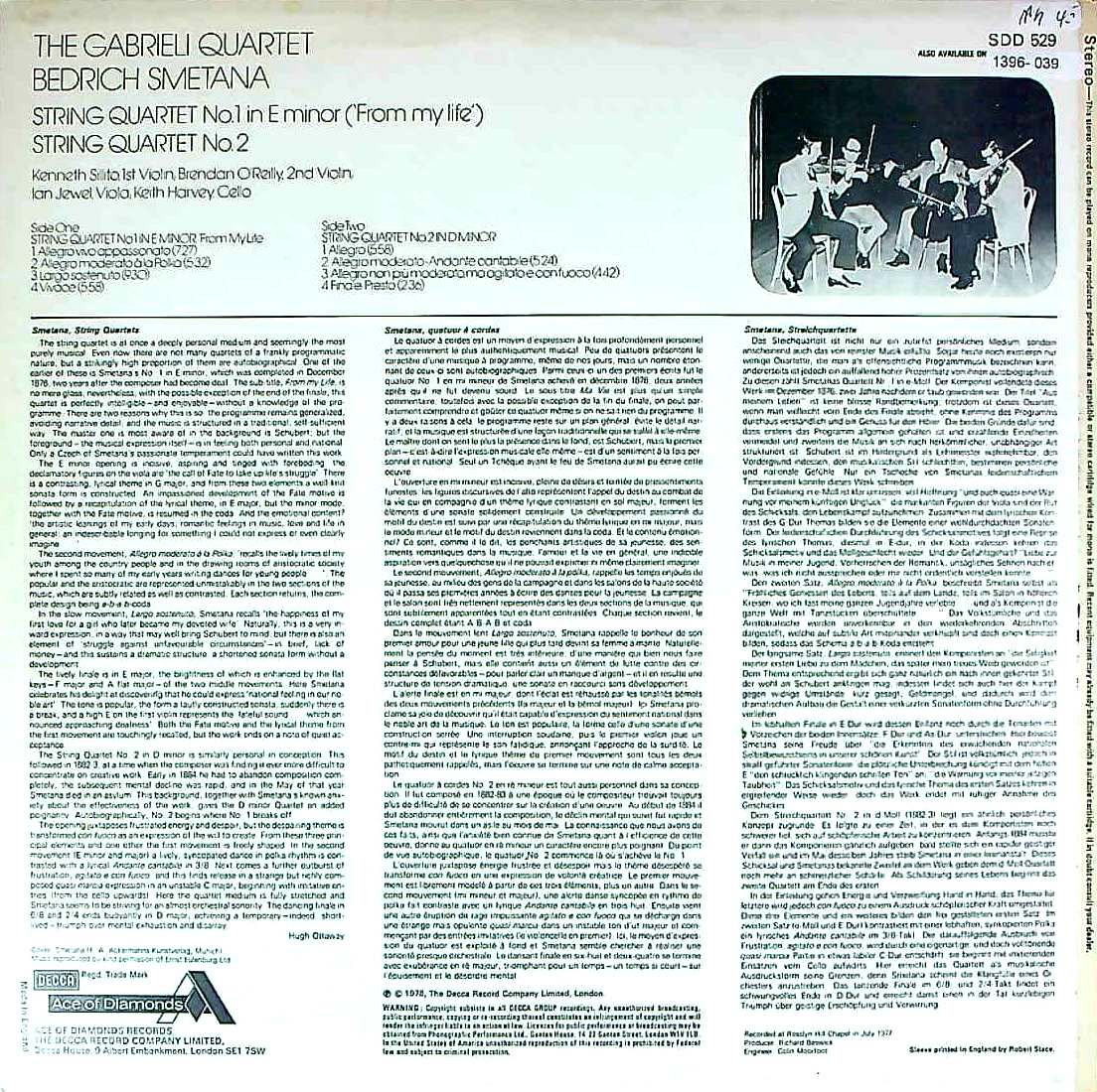 商品コード:1396-039[DECCA] ガブリエリQt. / スメタナ:弦楽四重奏曲1番「わが生涯より」, 弦楽四重奏曲2番