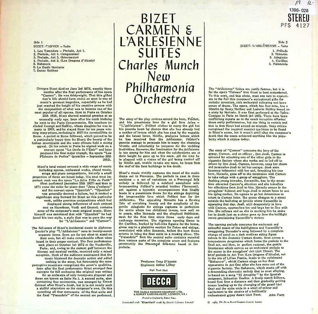 商品コード:1396-028[DECCA] C.ミュンシュ/ ビゼー:ミュンシュ版バレエ組曲集/「カルメン」組曲, 「アルルの女」組曲