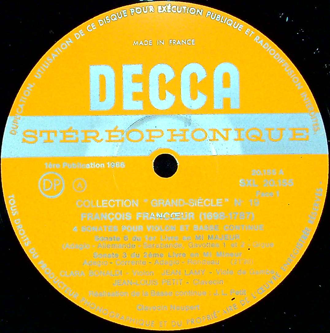 商品コード:1396-018[DECCA] C.ボナルディ(vn) 他/ 「Grand Siècle」Vol.19/F.フランクール:Vnソナタ集/第1巻6番, 第2巻3番, 第1巻5番, 第2巻1番