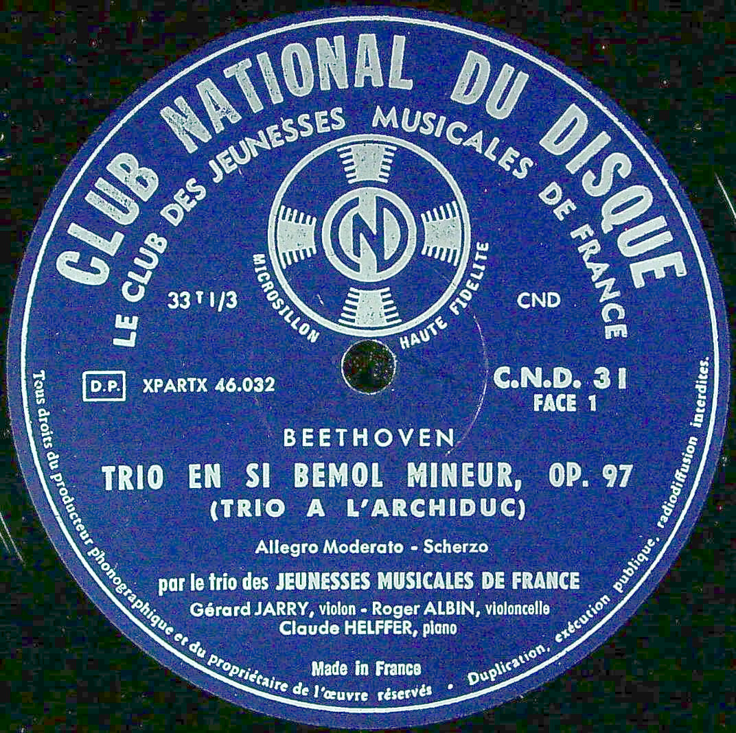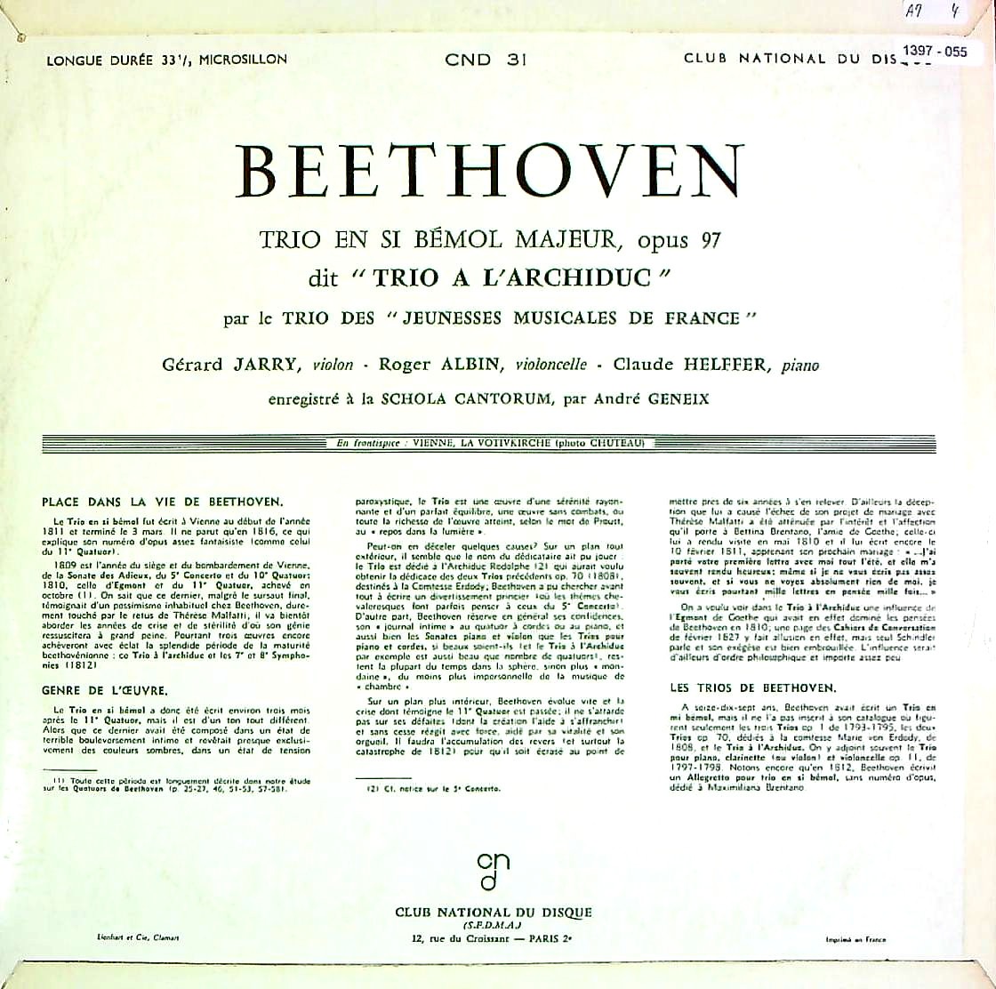 商品コード:1397-055[CLUB NATIONAL] フランス音楽青年トリオ/ ベートーヴェン:Pfトリオ7番Op.97「大公」