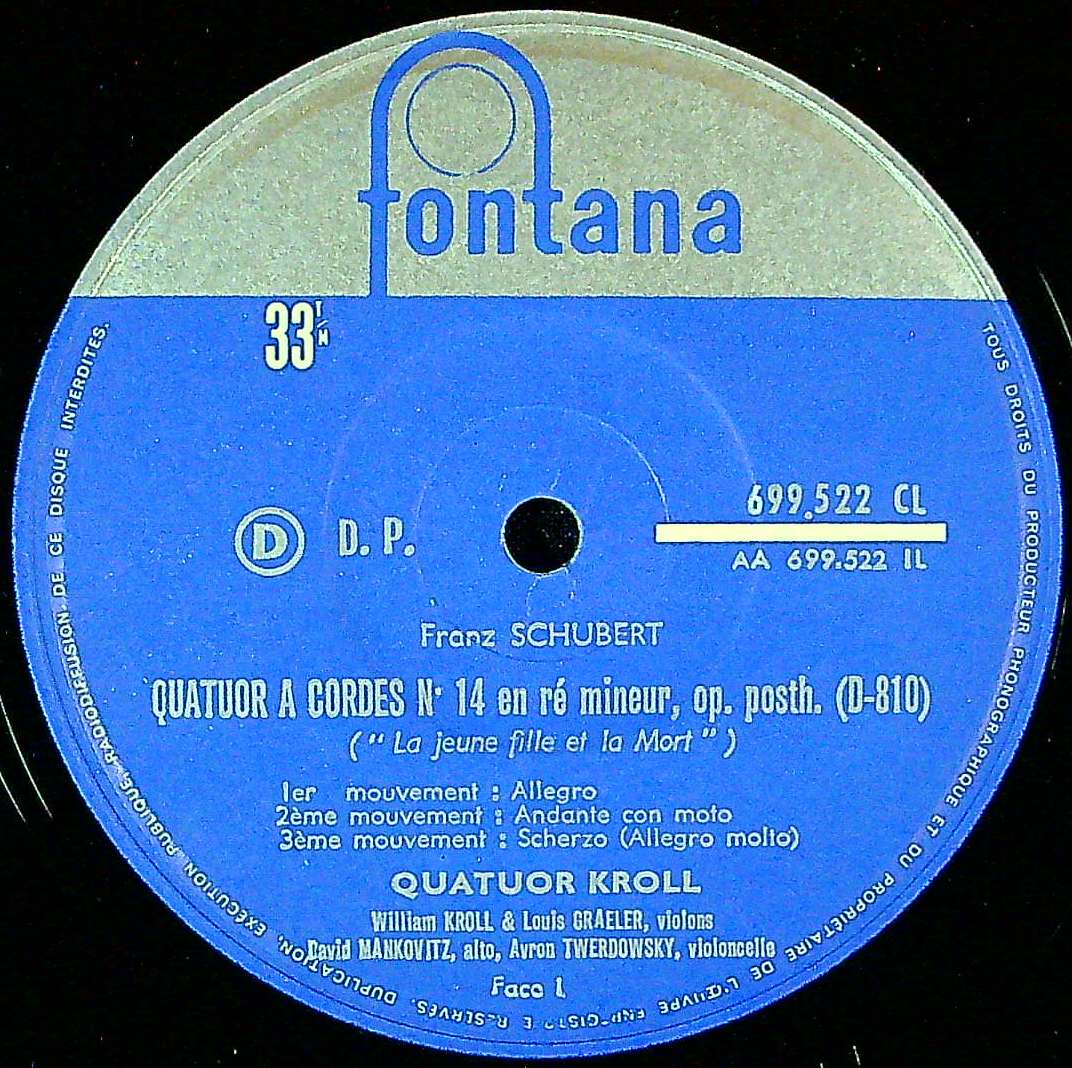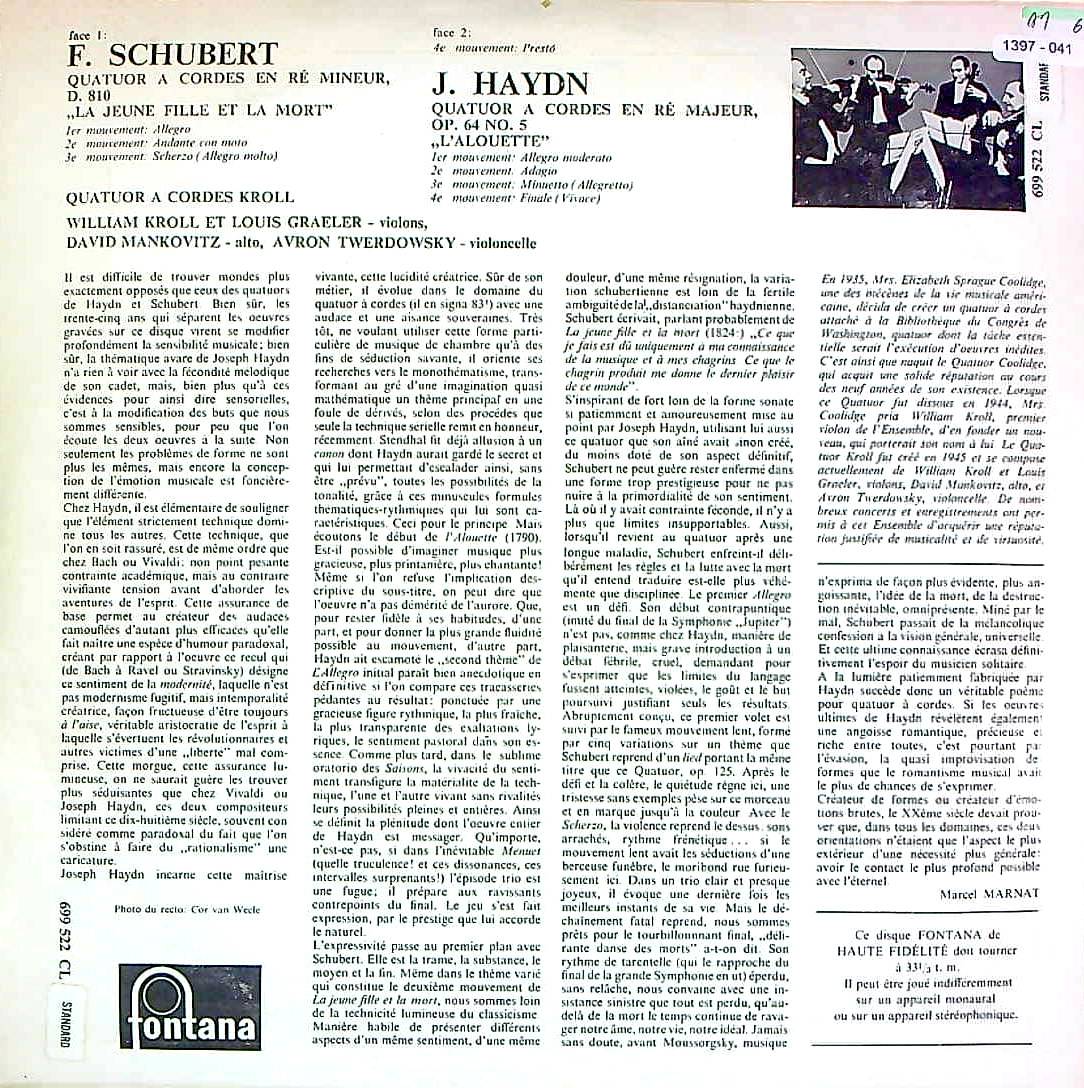 商品コード:1397-041p[FONTANA] クロールQt. / シューベルト:弦楽四重奏曲14番D.810「死と乙女」, ハイドン:弦楽四重奏曲第67番Hob. III:63 「ひばり」