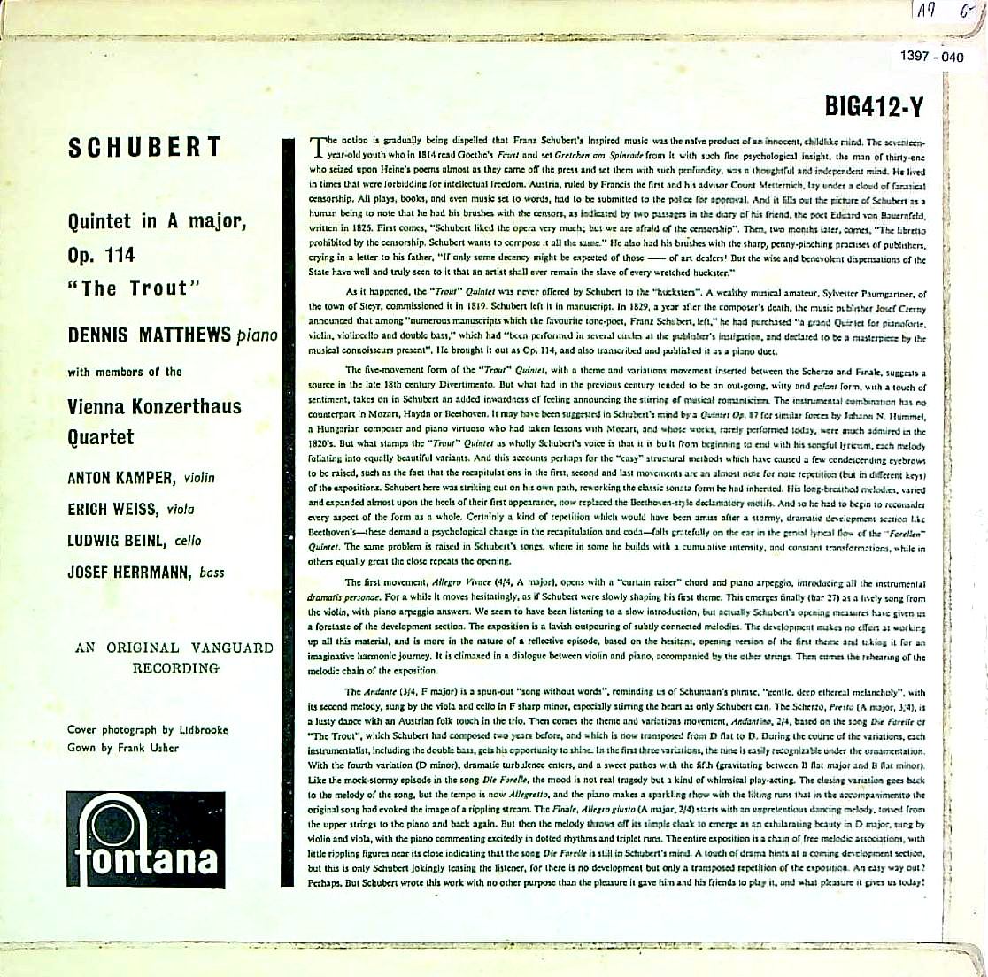 商品コード:1397-040[FONTANA] D.マシューズ(pf) ウィーン・コンツェルトハウスQt.メンバー/ シューベルト:五重奏曲D.667「鱒」