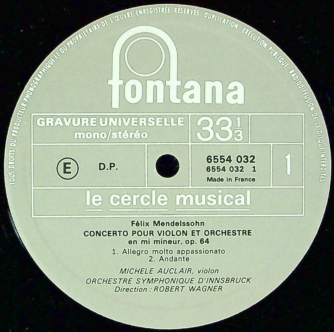 商品コード:1397-037[FONTANA] M.オークレール(vn)/ メンデルスゾーン:Vn協奏曲Op.64, シューベルト:ロザムンデD.797~第3曲&第9曲