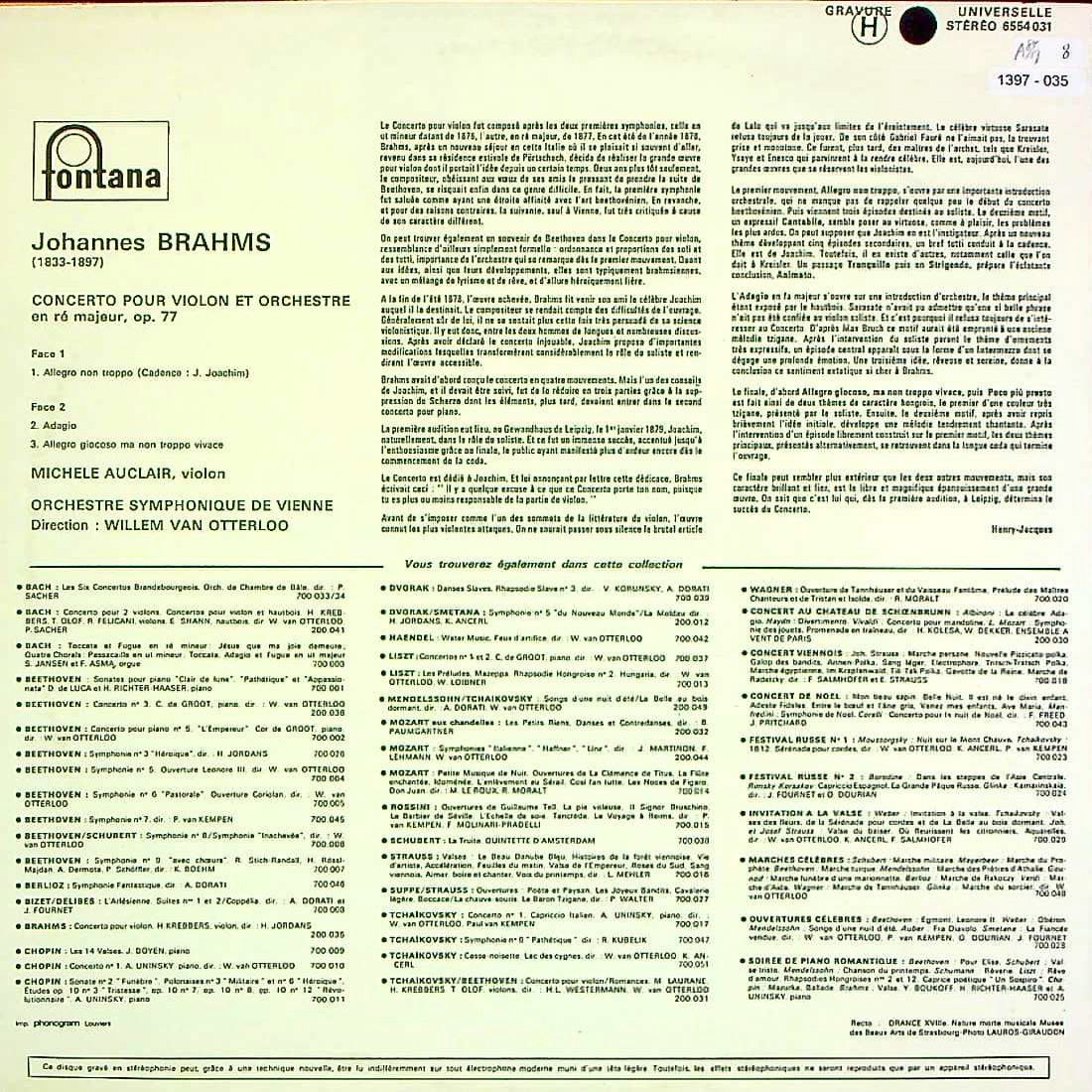 商品コード:1397-035[FONTANA] M.オークレール(vn)/ ブラームス:Vn協奏曲Op.77
