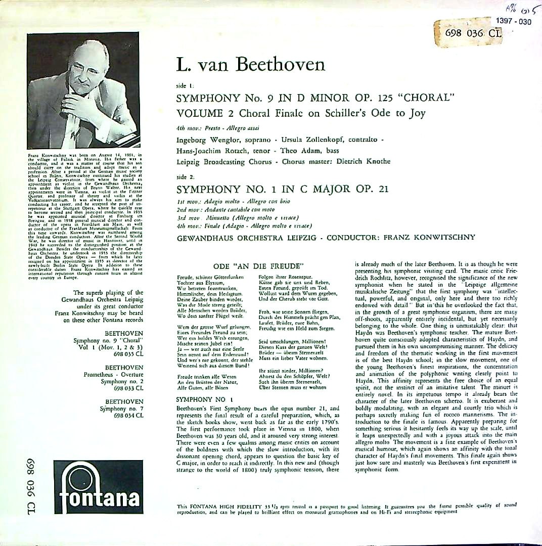 商品コード:1397-030[FONTANA] F.コンヴィチュニー/ ベートーヴェン:交響曲9番Op.125「合唱」, 交響曲1番Op.21