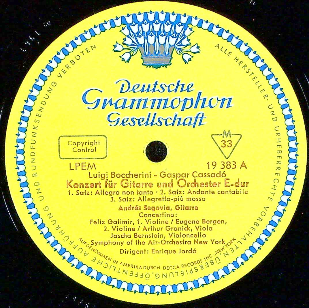 商品コード:1397-022[DGG] A.セゴビア(g)/ ボッケリーニ:Gt協奏曲ホ長調, バッハ:無伴奏Vc組曲3番BWV.1009, アグアド, ソル, ヴァイス, トローバ, エスプラ, ポンセ