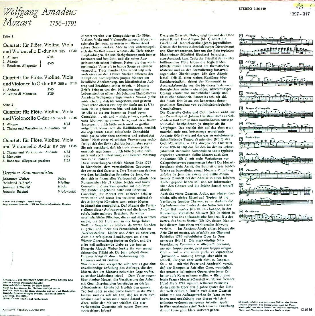 商品コード:1397-017n[ETERNA] ドレスデン室内ゾリステン・メンバー/ モーツァルト:Fl四重奏曲(全4曲)/1番K.285, 2番285a, 3番K.285b(K.Anh 171), 4番K.298