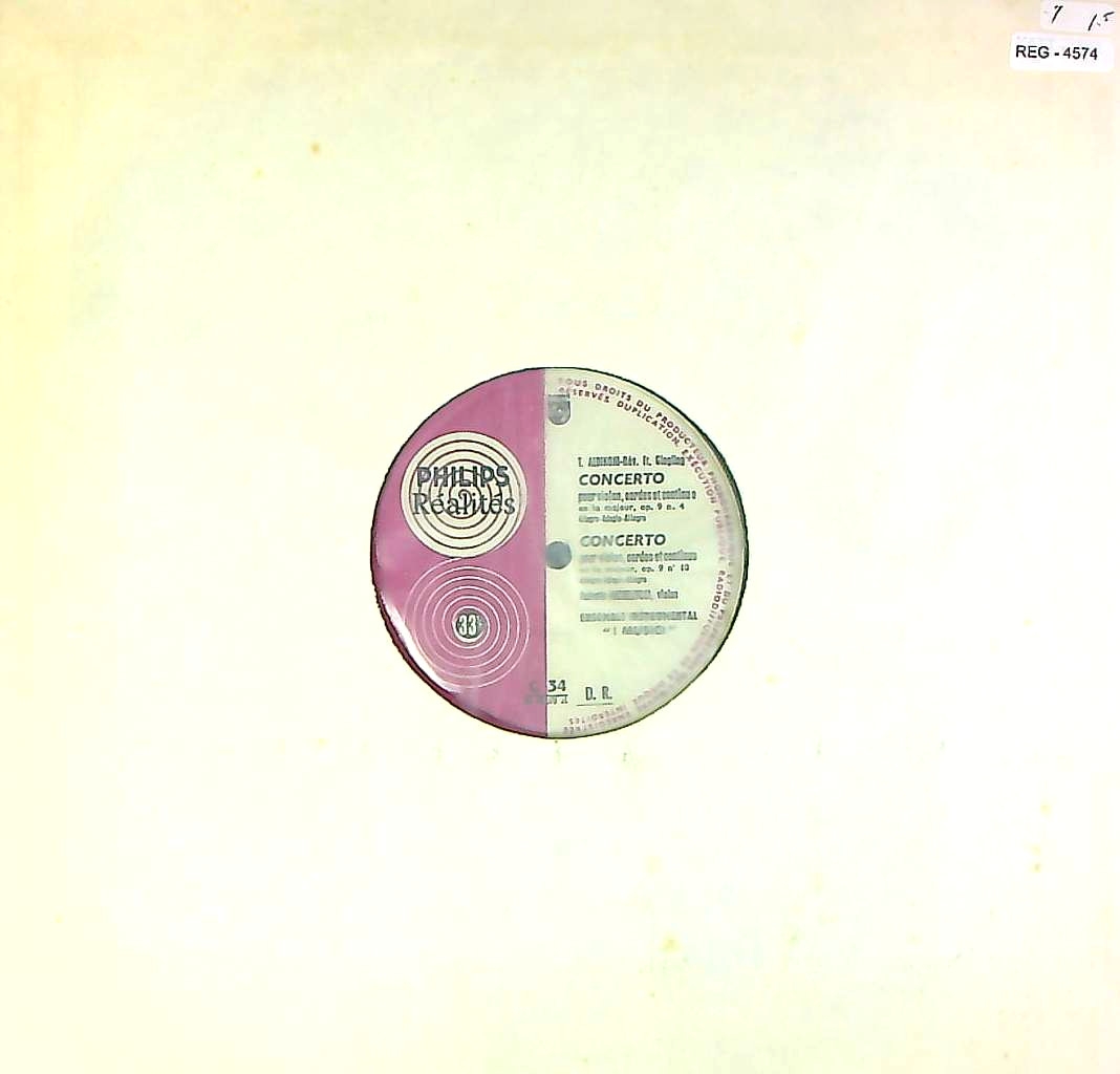 トピックス:仏ピンク白Realitesカマボコ外溝厚, 両穴内袋(ジャケ欠), アダージョはL.ジャゾットの作曲だが伝アルビノーニで広く知られる, 仏の数量限定プレス, レア!, 蘭ではL 02 079 L/835 235 LY, モノラル初入荷, 仏オリジナル