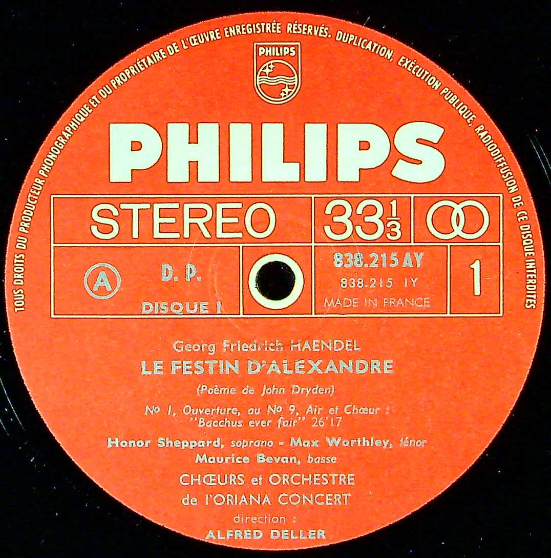 商品コード:REG-4569[欧PHILIPS] A.デラー / ヘンデル:「アレクサンダーの饗宴」(全曲)