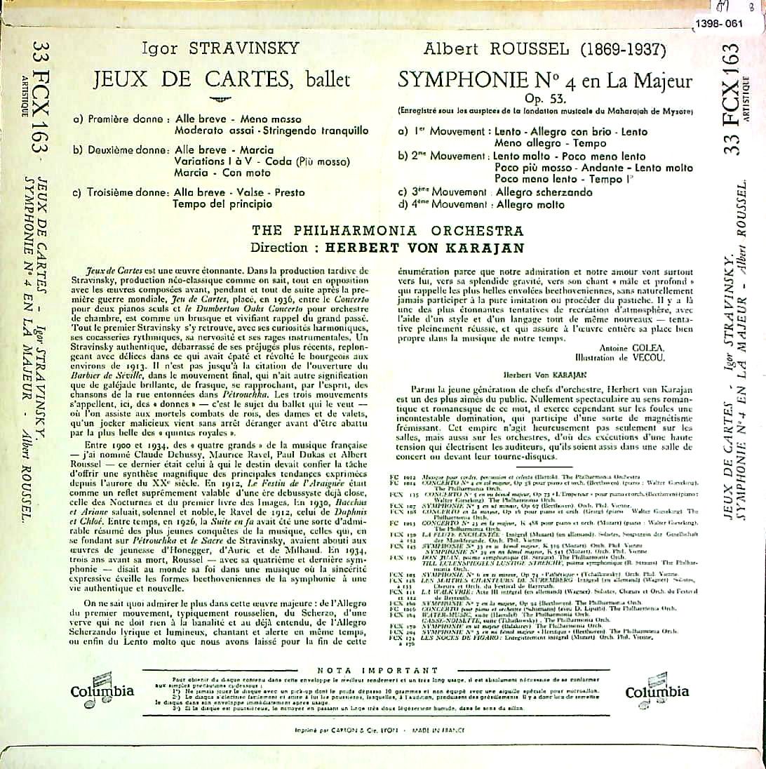 商品コード:1398-061[COLUMBIA] H.v.カラヤン/ ストラヴィンスキー:バレエ音楽「カルタ遊び」, ルーセル:交響曲4番Op.53