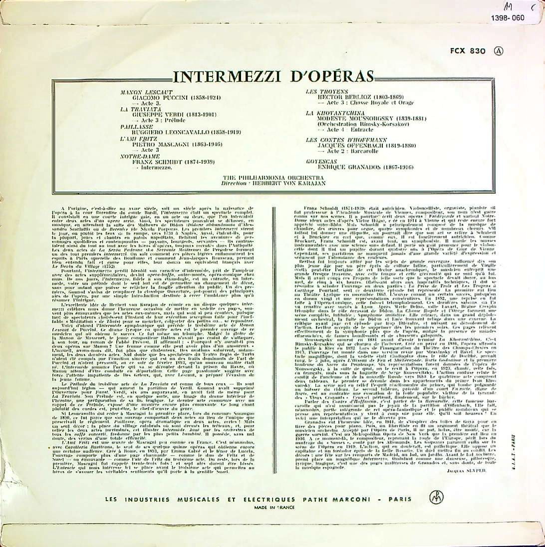 商品コード:1398-060[COLUMBIA] H.v.カラヤン / オペラ間奏曲集Vol.2/プッチーニ, ヴェルディ, レオンカヴァルロ, マスカーニ, シュミット, ベルリオーズ, ムソルグスキー, オッフェンバック, グラナドス