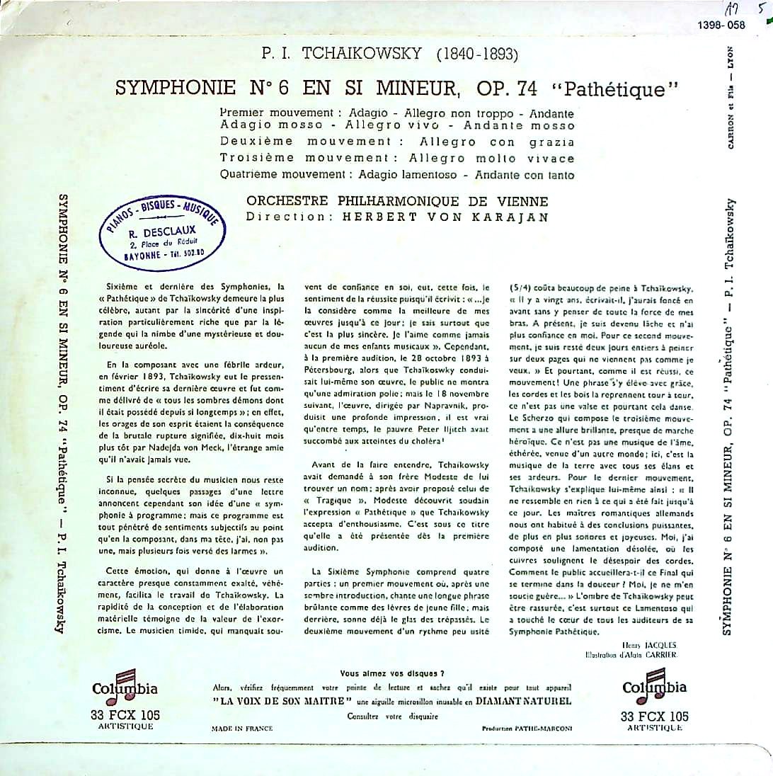 商品コード:1398-058[COLUMBIA] H.v.カラヤン/ チャイコフスキー:交響曲6番Op.74「悲愴」