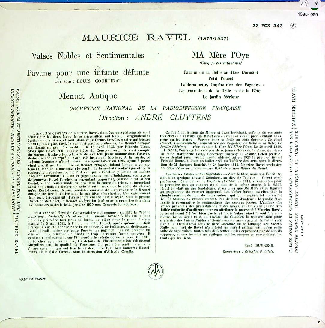 商品コード:1398-050[COLUMBIA] A.クリュイタンス/ ラヴェル:高雅で感傷的なワルツ, パヴァーヌ, 古風なメヌエット, マ・メール・ロワ