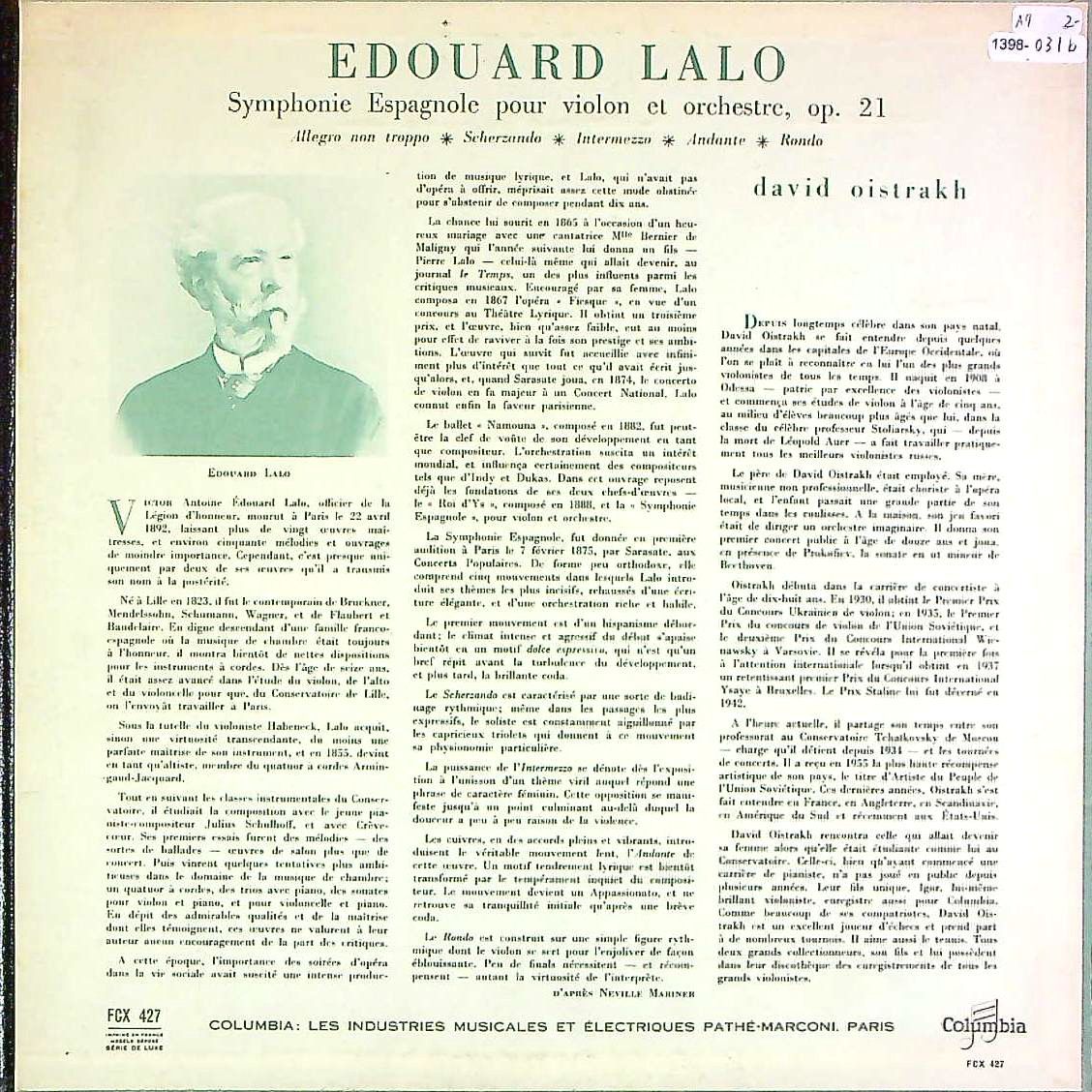 商品コード:1398-031b[COLUMBIA] D.オイストラフ(vn)/ ラロ:スペイン交響曲Op.21