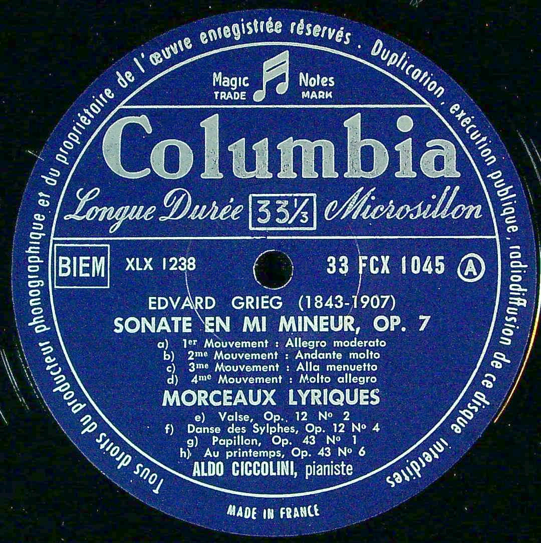 商品コード:1398-030[COLUMBIA] A.チッコリーニ(pf) / グリーグ:Pf作品集/PfソナタOp.7, 抒情小品集(抜粋7曲) 他