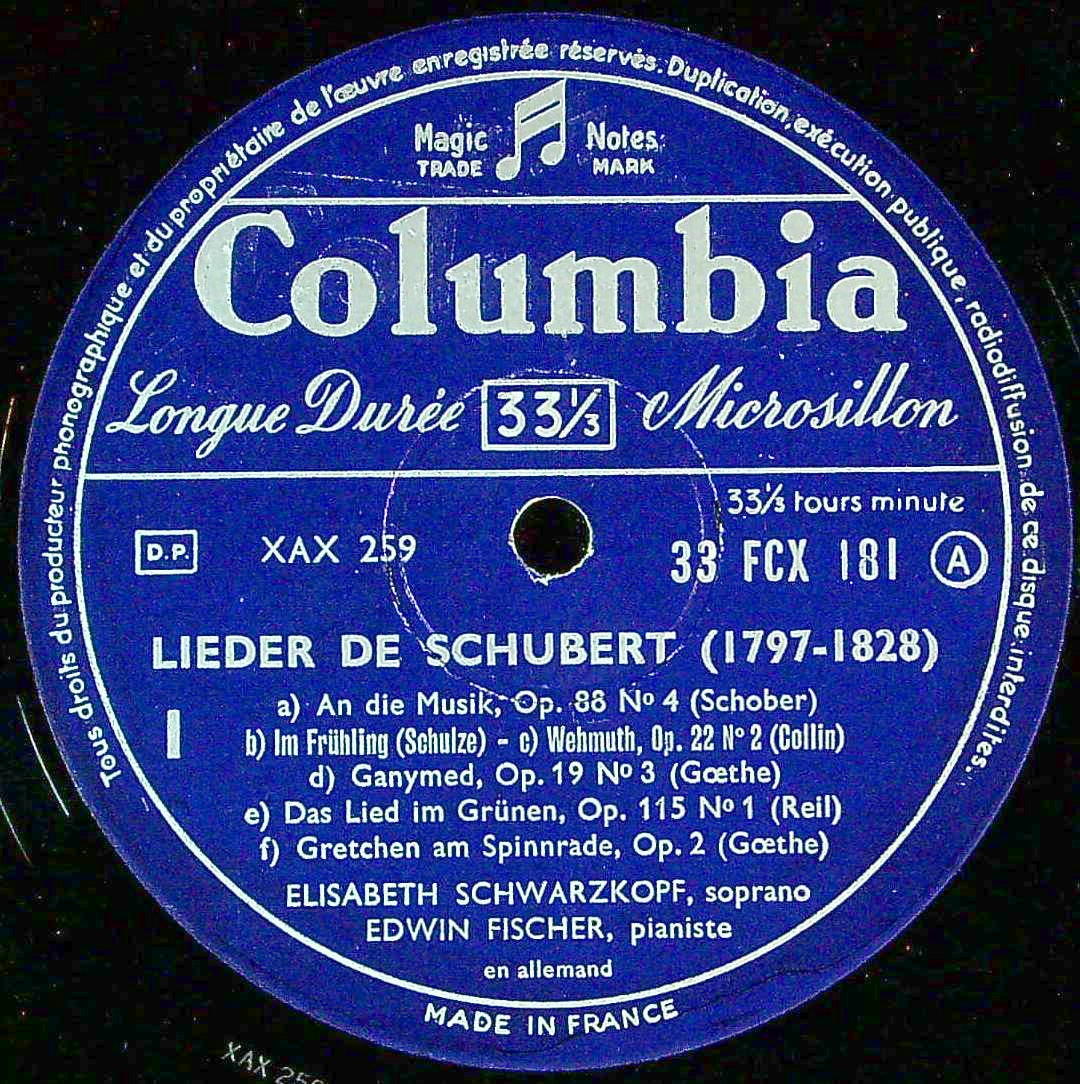 商品コード:1398-024[COLUMBIA] E.シュヴァルツコップ(s)/ シューベルト:歌曲集(全12曲)/音楽に寄せて, 悲しみ, ガニュメート, 恋人の近くに, ミューズの子 他