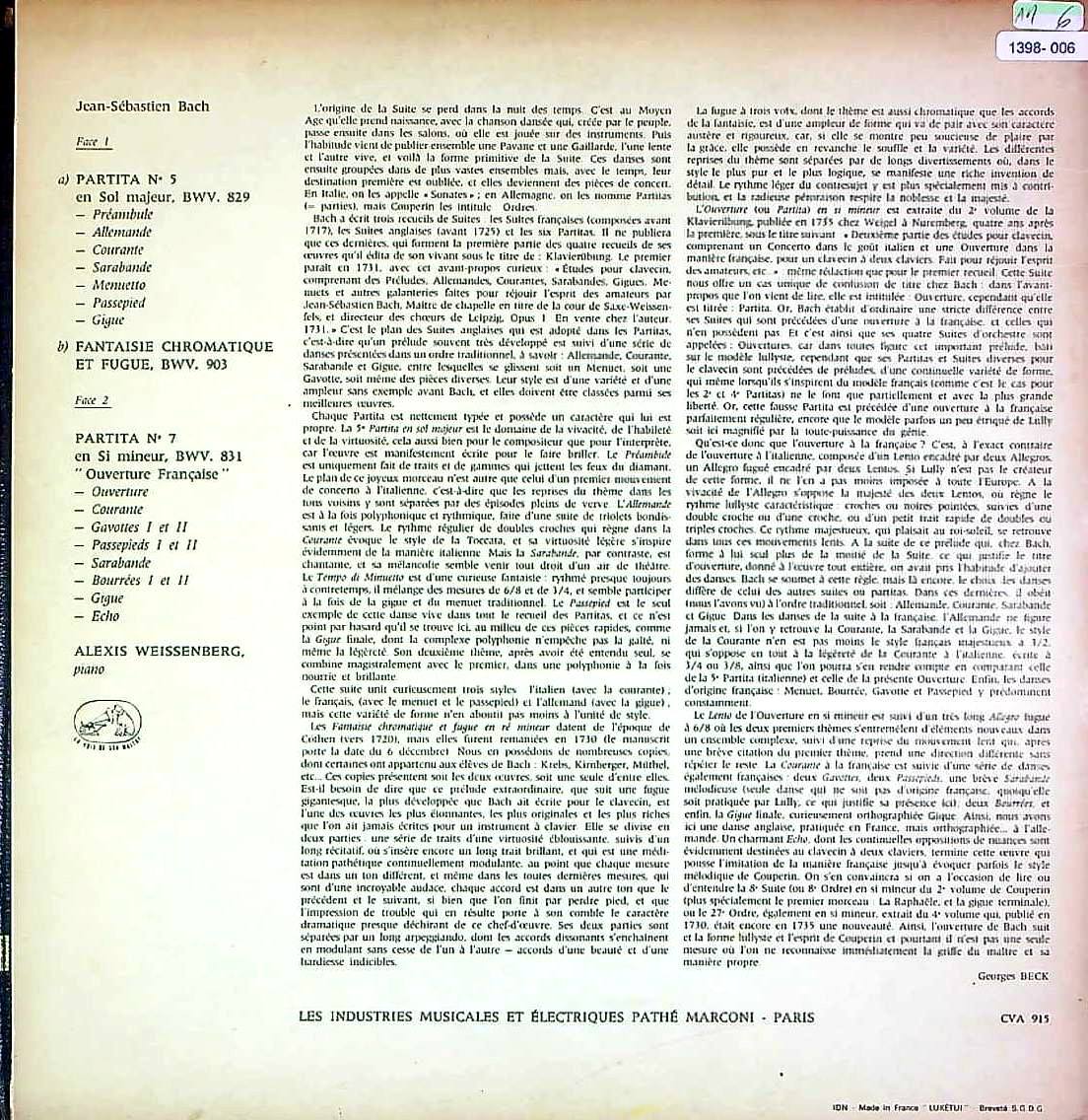 商品コード:1398-006p[VSM] A.ワイセンベルク(pf) / バッハ:パルティータ録音集Vol.3/半音階的幻想曲BWV.903, パルティータ5番BWV.829, 7番BWV.831
