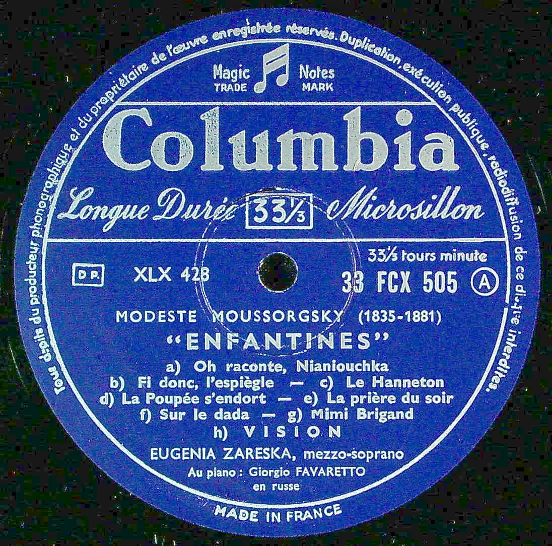 商品コード:REG-4595[仏COLUMBIA] E.ザレスカ(s) G.ファヴァレット(pf) / ムソルグスキー:子供部屋, 他歌曲9曲