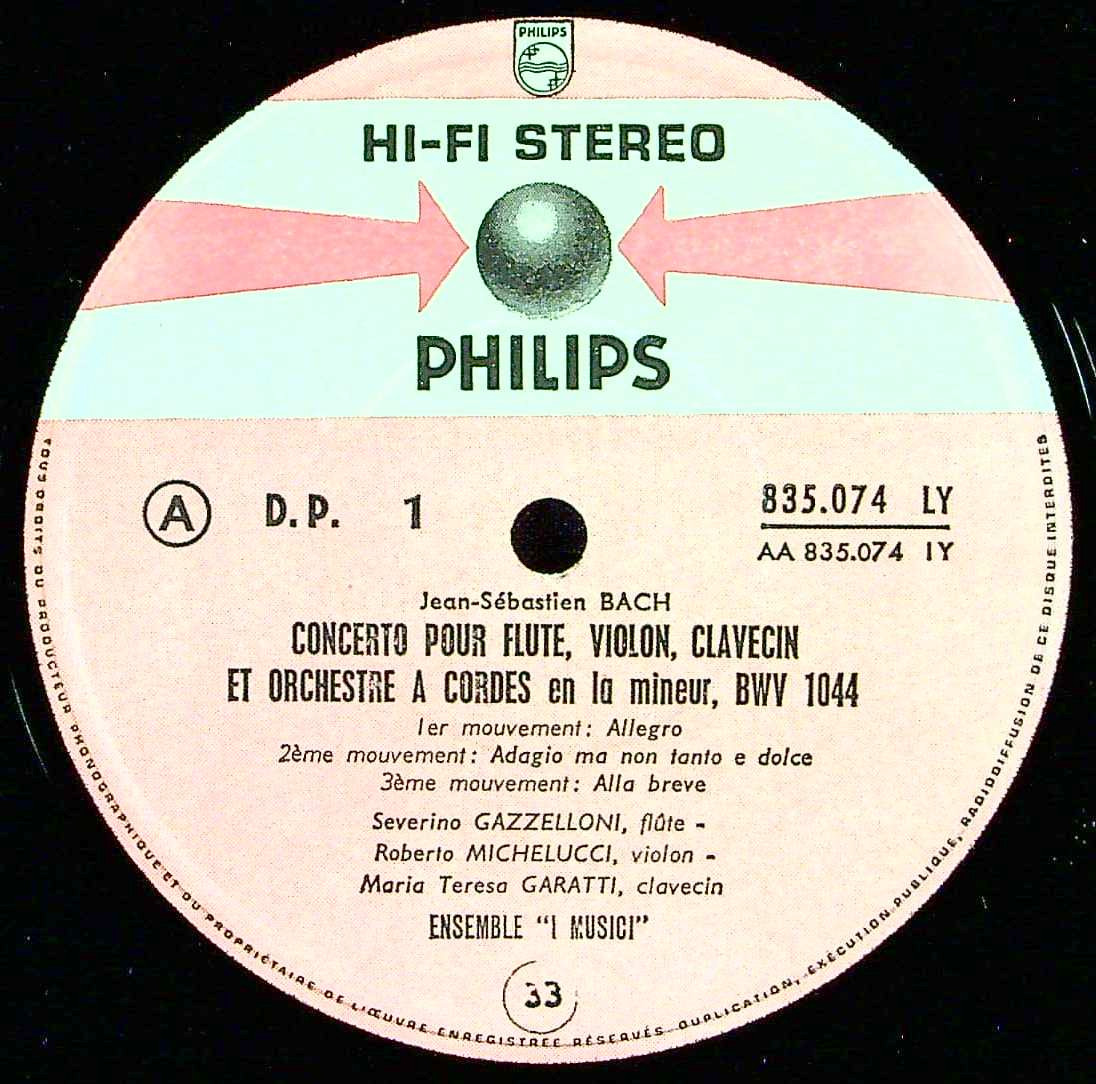 商品コード:REG-4586[欧PHILIPS] イ・ムジチ S.ガッゼローニ(fl) 他/ バッハ:合奏協奏曲B.1044, Ob・Vn協奏曲, ブランデンブルク協奏曲3番B.1048