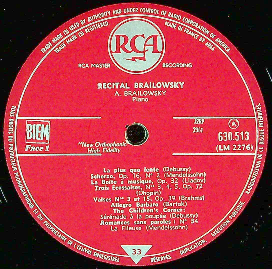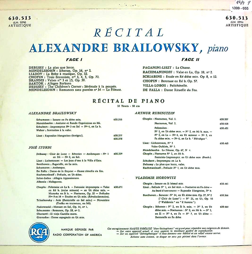 商品コード:1399-055[RCA] A.ブライロフスキー(pf) / Pf小品集/ドビュッシー, メンデルスゾーン, リャードフ, ショパン, ブラームス, バルトーク 他