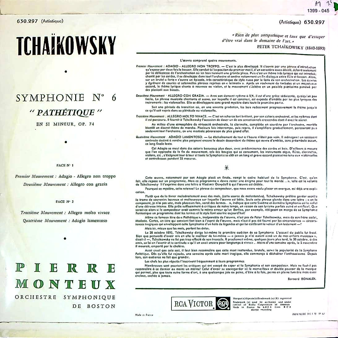 商品コード:1399-045[RCA] P.モントゥー/ チャイコフスキー:交響曲6番Op.74「悲愴」