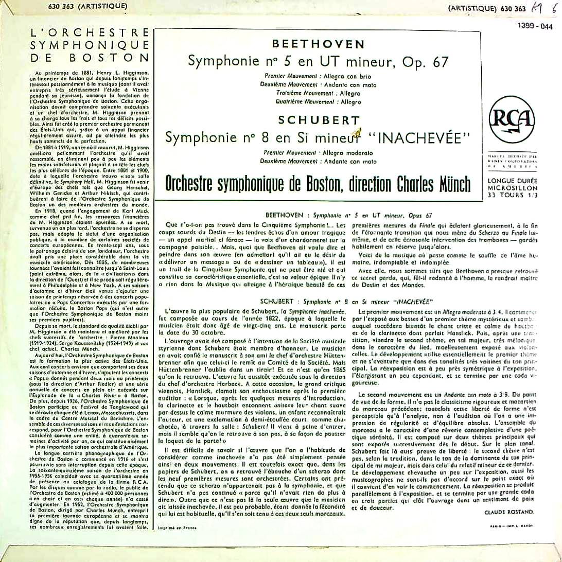 商品コード:1399-044[RCA] C.ミュンシュ/ ベートーヴェン:交響曲5番Op.67「運命」, シューベルト:交響曲8番D.759「未完成」