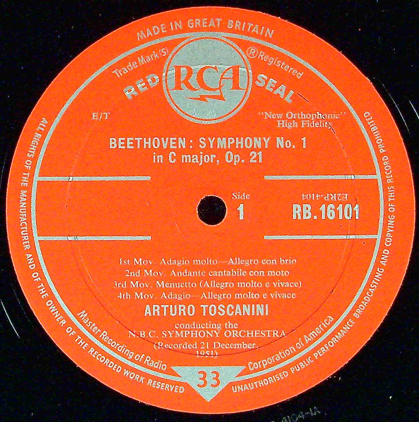 商品詳細:トスカニーニのベートーヴェンは、全て米RCA録音。1番は1951年12月、2番は1949年11月と1951年10月の録音。このテンポ感、躍動感はフルトヴェングラーの対極にあると言ってよい。既に1950年代前期にこのような現代的な演奏があったとは驚く。近代演奏の始まりのような洗練された演奏。イタリア人トスカニーニだから成し得たのだろう。英国とフランスでは米RCA音源を使ってEMI系とRCA系の2種のプレスが存在する。RCA系は少し後の発売となるがRCA系の音質はわずかに固めだがはっきりとして大変聴きやすい音質で良い。決して米国RCAの乾いた強い音質ではない。フルトヴェングラーと対極にある現代のスタイルの元となった演奏!フランスでは1956年頃からカップリング違いで仏RCAレーベルからも平行発売されるが英国では1958-60年になる。音質はそれぞれの国の特徴が出る。英国盤はDECCAがプレスした為パワーのある押し出しが強い音質である。全集を揃える場合はEMI系とRCA系を交ぜないように、また国を揃えることが早道でダブりが出ない最良の方法である。特別な希少プレスではないので、5年あれば同一シリーズで揃えることができると思われる。トスカニーニとフルトヴェングラーという2つの柱がいつの時代でも比較されるが、どちらも優劣の付けられない名演と信じる。但し指揮者に系譜から考えると、フルトヴェングラーは一代限りのスタイルであり、トスカニーニは彼以降全ての指揮者の源流と言うことができる。両者の人気の度合いは時代の背景で異なり、不況になるとトスカニーニが注目されるようになることが経済学者から指摘されている。