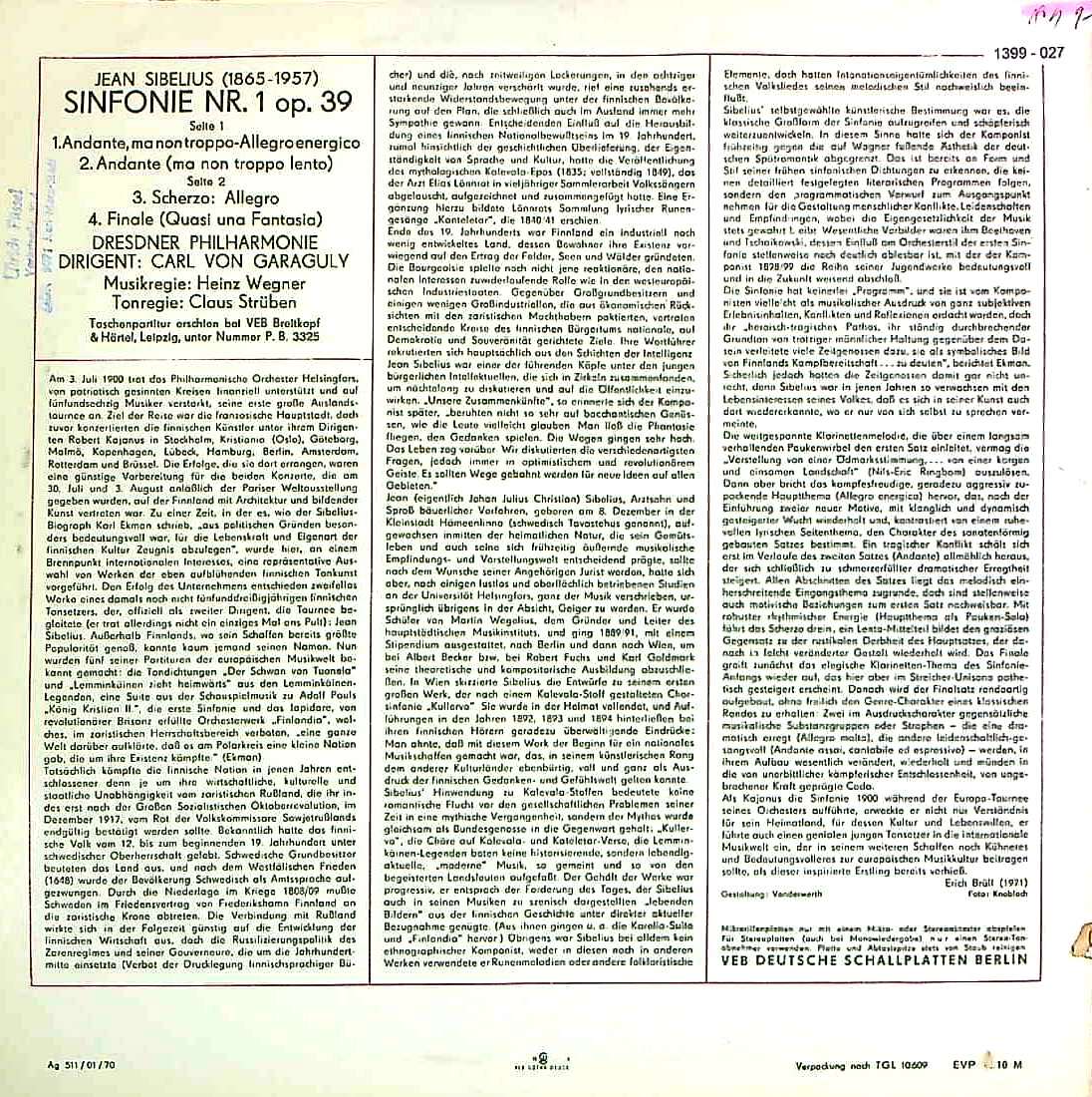 商品コード:1399-027t[ETERNA] C.v.ガラグリ/ シベリウス:交響曲1番Op.39