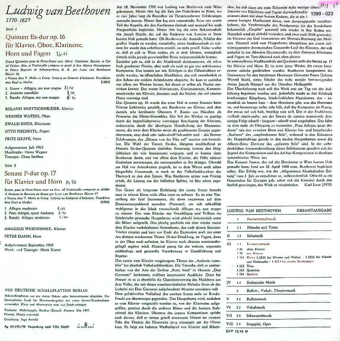 商品コード:1399-023t[ETERNA] R.ブレッドシュナイダー(pf) 他/P.ダム(hr)/ ベートーヴェン:Pfと管楽のための五重奏曲Op.16, HrソナタOp.17