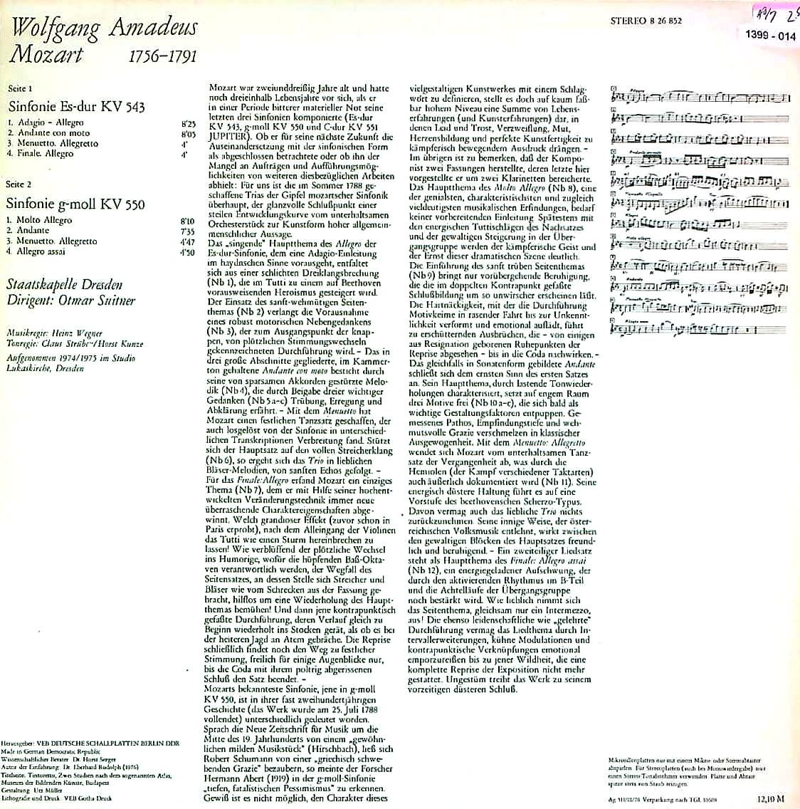商品詳細:1974~5年、2曲ともモーツァルトEDのための録音。名技師シュトリューベンとクンツェによる。このLPが日本に入ってきた当時は、その演奏内容を差し置いて、オーディオファイルとして非常に持て囃された。SXLやASDとはまったく発想の異なる、軽快でふんわりと風になびくようなステレオ。多くの人が今までにない新しいタイプであると認識したからだろう。改めて今聴くと、音質だけでなくスウィトナーの様式の素晴らしさと新しさも再認識させられる。更に人気は高まるだろう。モーツァルト・エディションの中核となる録音でO.スウィトナー指揮ドレスデンsk.で中後期の主要曲全集を揃えることができるようになる。この2曲は最初からモーツァルト・エディションとして1974/1975年に録音されたものでEDが初リリースとなる。ED前の旧デザインジャケット入りは存在しない。オトマール・スウィトナー (1922-2010)は東独ではなくオーストリア生まれ。1973年にN響の名誉指揮者に就任した為か日本人ファンは非常に多い。シュターツカペレと呼ばれる2つの楽団の指揮者として紹介されてきたからだろう。ベルリンとドレスデン。ドレスデン退団後の1964-1990年までの26年間のベルリン音楽総監督(ベルリン国立歌劇場)時代に録音された全集である。2010年ベルリンで亡くなった際にはNHKがドキュメンタリー番組を放送した。「古きよきドイツの伝統」等と書かれる事の多いスウィトナー。地味だがドイツ的な華やぎもある指揮者だと思う。ベルリンとドレスデンの2つのシュターツ・カペレのカペル・マイスターを経験した二人目の指揮者で旧東独にはスウィトナーの他にコンヴィチュニーしかいない。