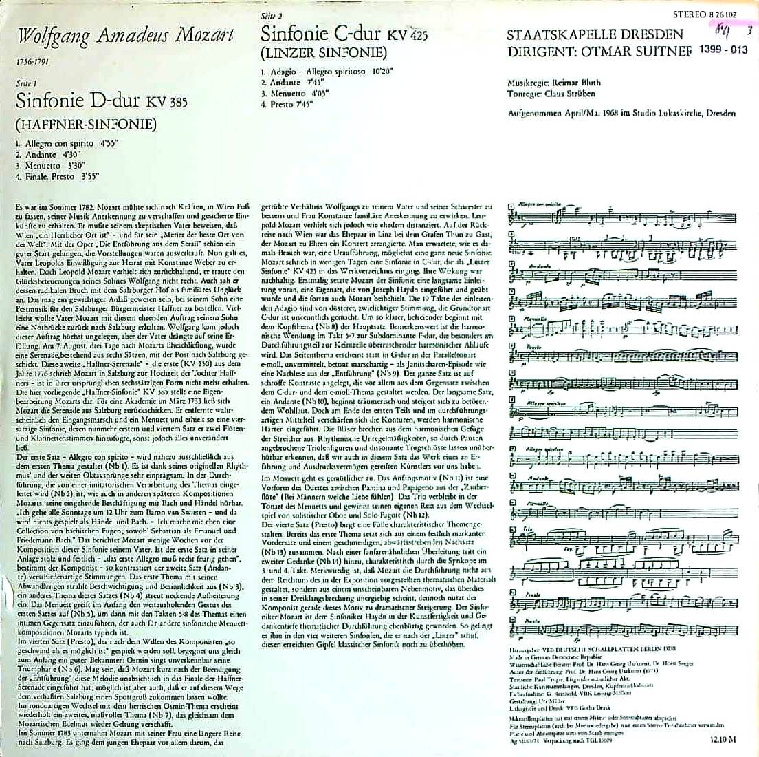 商品コード:1399-013t[ETERNA] O.スウィトナー/ モーツァルト:交響曲35番K.385「ハフナー」, 36番K.425「リンツ」