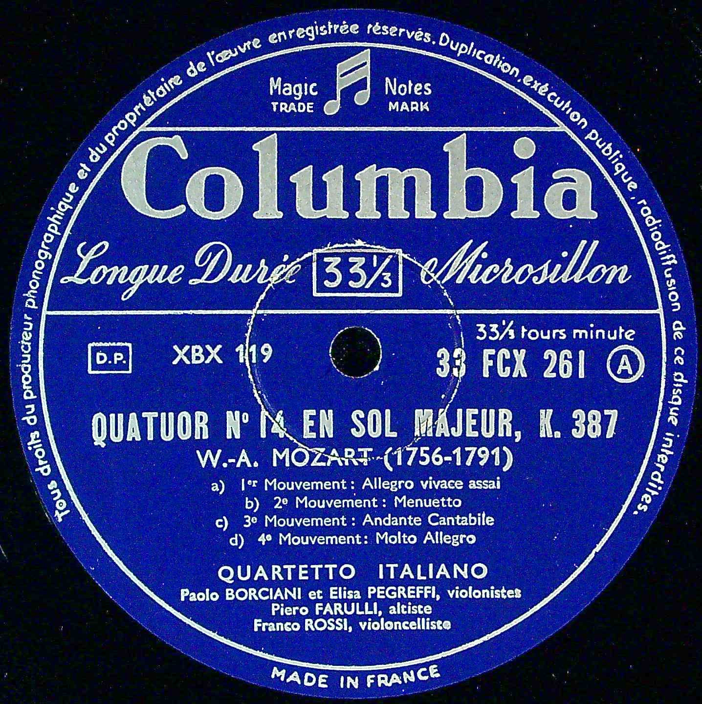 商品コード:1399-008n[COLUMBIA] イタリアQt. / モーツァルト:弦楽四重奏曲14番K.387, 15番K.421