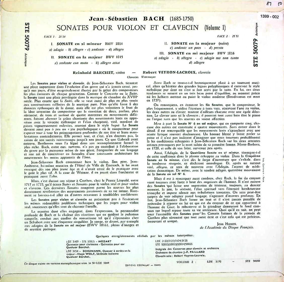 商品コード:1399-002[ERATO] R.バルヒェット(vn)/ バッハ:Vnソナタ集Vol.1/Vnソナタ1~3番BWV.1014~1016