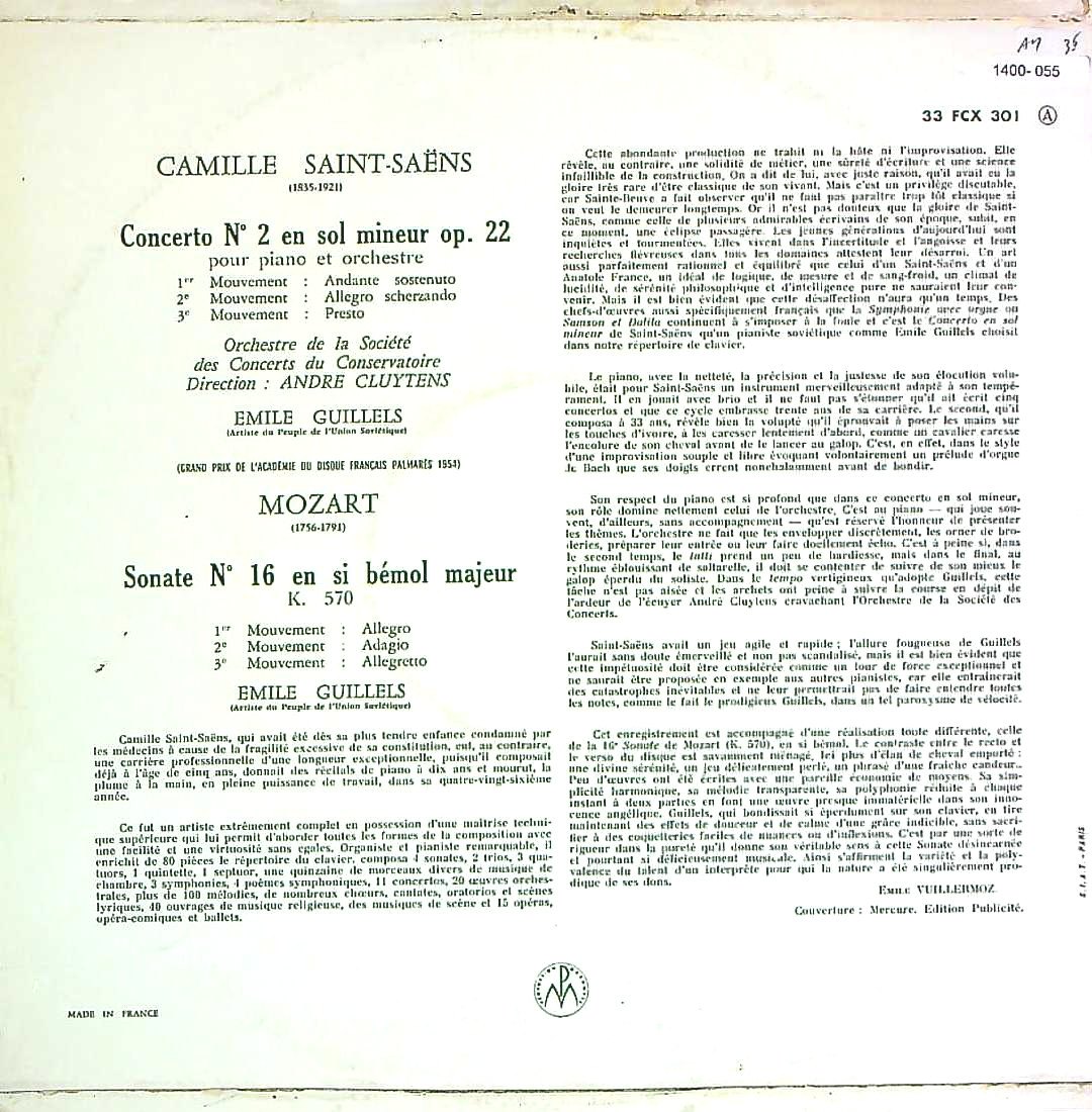 商品コード:1400-055[COLUMBIA] E.ギレリス(pf)/ サン・サーンス:Pf協奏曲2番Op.22, モーツァルト:Pfソナタ16番K.570