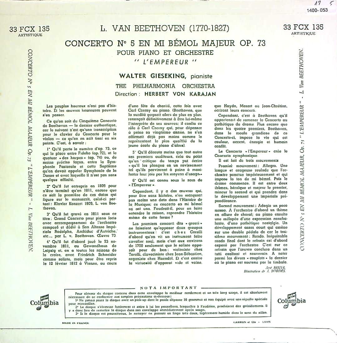 商品コード:1400-053[COLUMBIA] W.ギーゼキング(pf)/ ベートーヴェン:Pf協奏曲5番Op.73「皇帝」