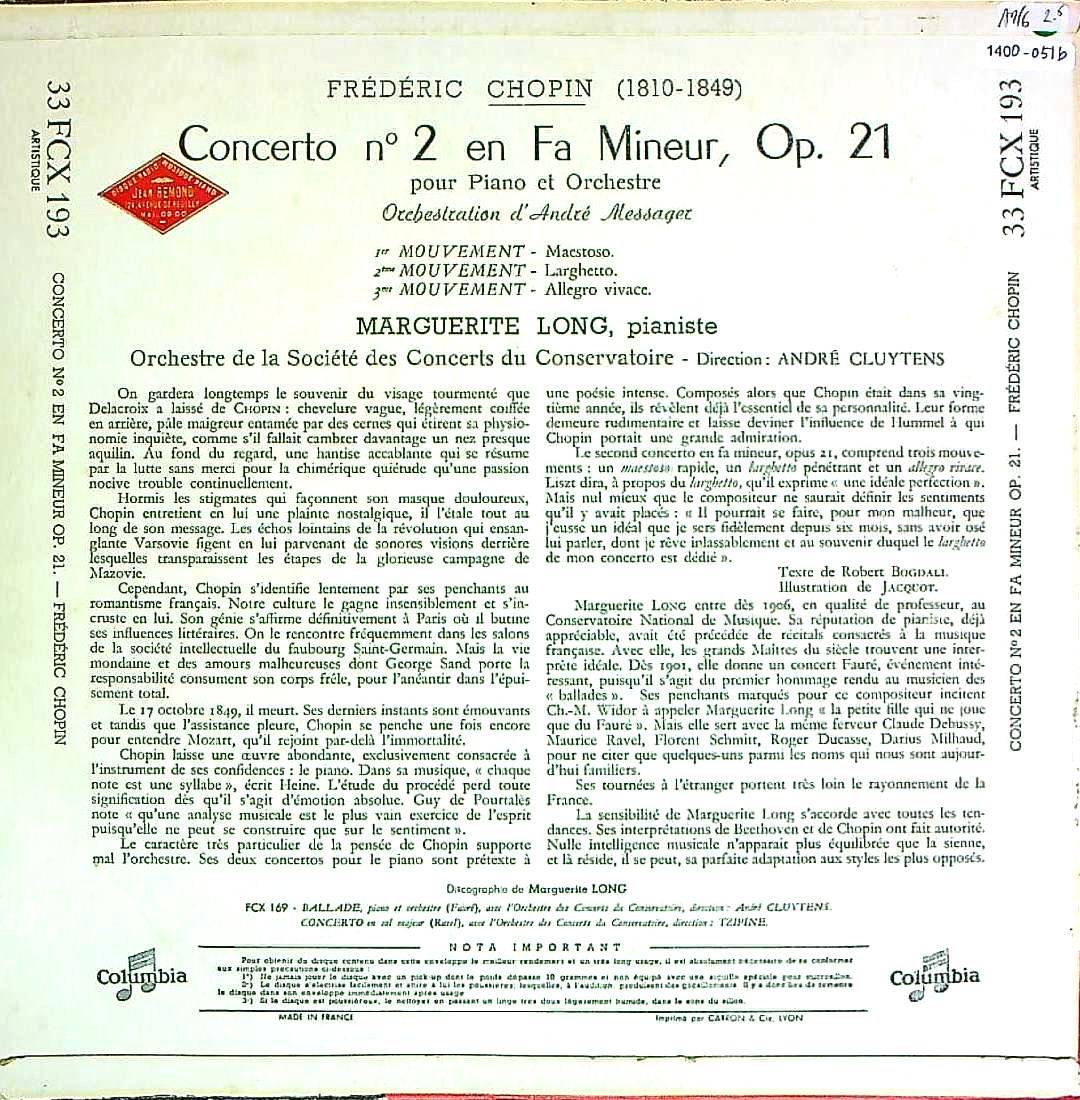 商品コード:1400-051b[COLUMBIA] M.ロン(pf)/ ショパン:Pf協奏曲2番Op.21